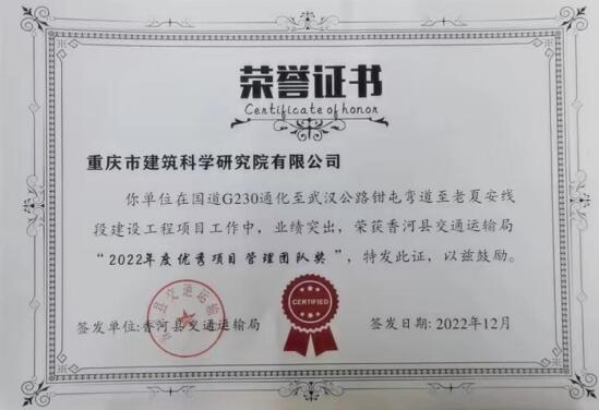 國道G230通武線項目,投資總估算約為13.36億元,全長5.3公里,全線采用雙向六車道一級公路標(biāo)準(zhǔn)建設(shè),設(shè)計速度80公里/小時,全線設(shè)特大橋1座。2022年6月20日正式開工建設(shè)以來,市建科院始終堅持高效統(tǒng)籌、科學(xué)調(diào)度,在保證質(zhì)量和安全的前提下,督促項目監(jiān)理部切實發(fā)揮監(jiān)理職能,要求總承包項目部優(yōu)化施工組織,協(xié)助政府相關(guān)部門強化拆遷調(diào)度,為項目質(zhì)量、安全和投資年度目標(biāo)的實現(xiàn)打下夯實的基礎(chǔ),截止目前已完成投資約5.05億元,實現(xiàn)安全生產(chǎn)“零”事故,并獲得主管部門頒發(fā)的2022年度“優(yōu)秀項目管理團隊獎”。