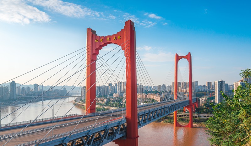 (橫跨江面的紅巖村大橋 )